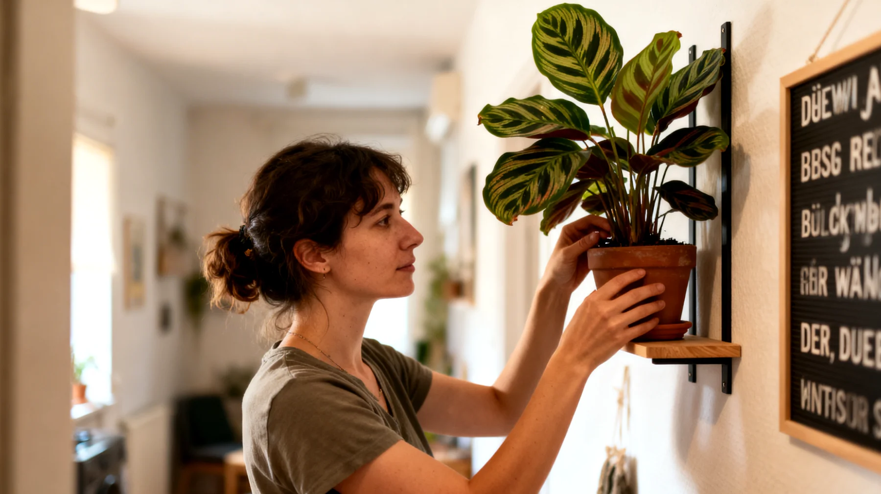 Es lohnt sich, Räume nach Funktionen zu betrachten, nicht nach freien Flächen. So kann eine Calathea orbifolia auf einem Regal in der Nähe des Kochbereichs helfen, die erhöhte Luftfeuchtigkeit zu nutzen; eine Calathea rufibarba wiederum profitiert von der morgens entstehenden Restwärme im Badezimmer. Wer mehrere kleine Exemplare kombiniert und sie gezielt diesen Zonen zuordnet, erzielt ein gleichmäßigeres Raumklima und entlastet gleichzeitig jede einzelne Pflanze.