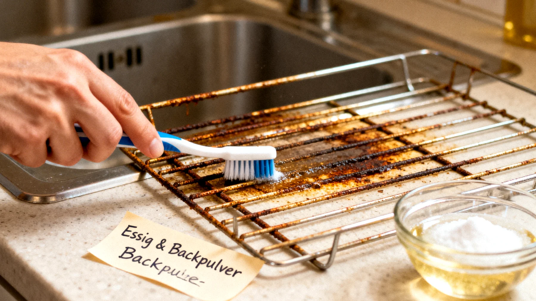Die Reaktion zwischen Natron und Essigsäure ist an der charakteristischen Schaumbildung erkennbar – dabei entsteht Kohlendioxid, das die letzten Rostteilchen mechanisch von der Oberfläche löst. Dieser doppelte Effekt – chemische Auflösung und mechanische Ablösung – macht die Methode besonders wirksam. Gleichzeitig ist sie ungefährlich für Anwender und Umwelt, im Gegensatz zu aggressiven chemischen Rostlösern.