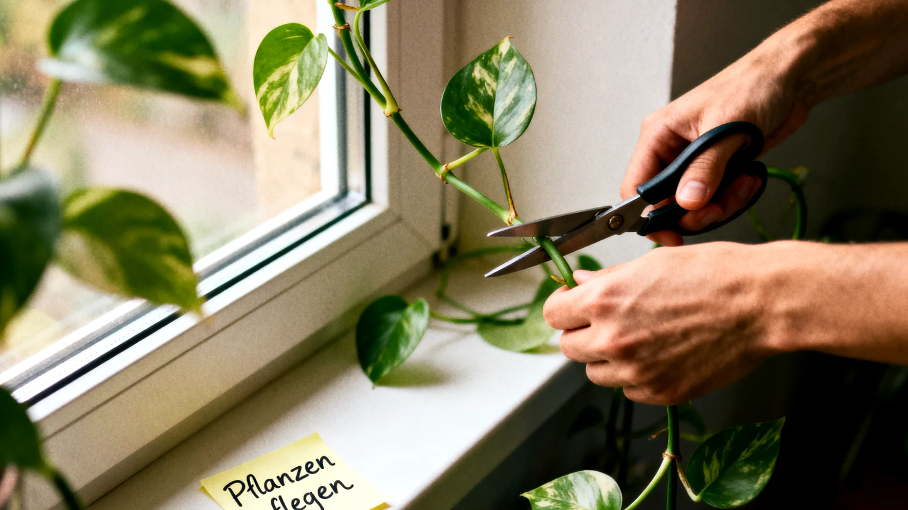 Eine geordnete Efeutute entsteht nicht durch einen einmaligen Eingriff, sondern durch periodische Anpassung. Dieser Rhythmus ist wichtiger als Perfektion. Ein monatlicher Mini-Check reicht: Zwei bis drei überlange Triebe kürzen, abgestorbene Blätter entfernen, Aufhängung und Clips prüfen, damit keine Ranke eingeklemmt wird, und die oberste Erdschicht leicht auflockern, um Sauerstoff ins Wurzelareal zu bringen.